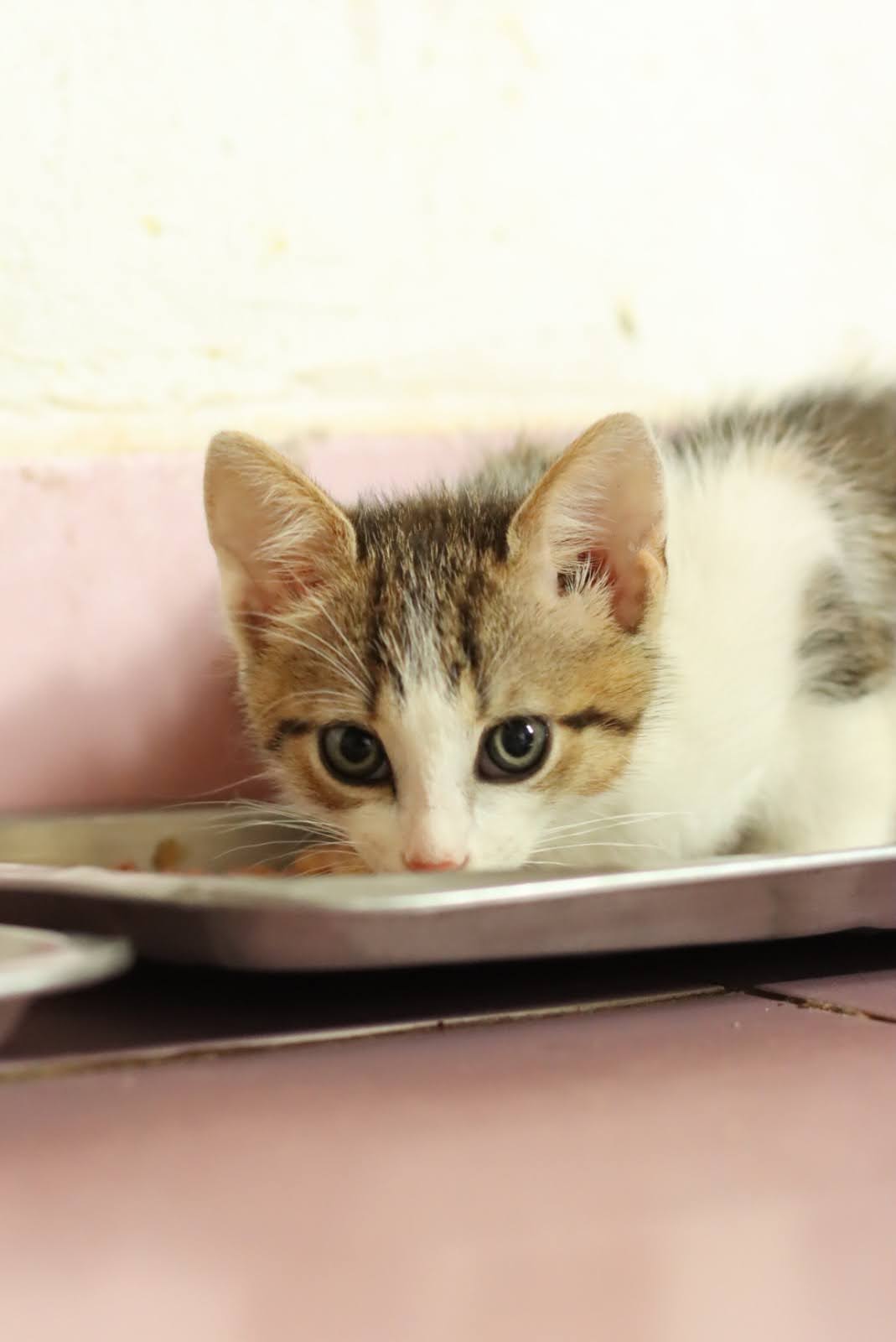 Eos et ses sœurs (Taïga, Yume et Nix) n’ont pas eu le plus tendre des débuts… Tout petits, ils ont été retrouvés enfermés dans un carton, jeté par-dessus la barrière du refuge. Amaigris, terrorisés et très fragiles, ils ont dû recevoir des soins urgents pour survivre.