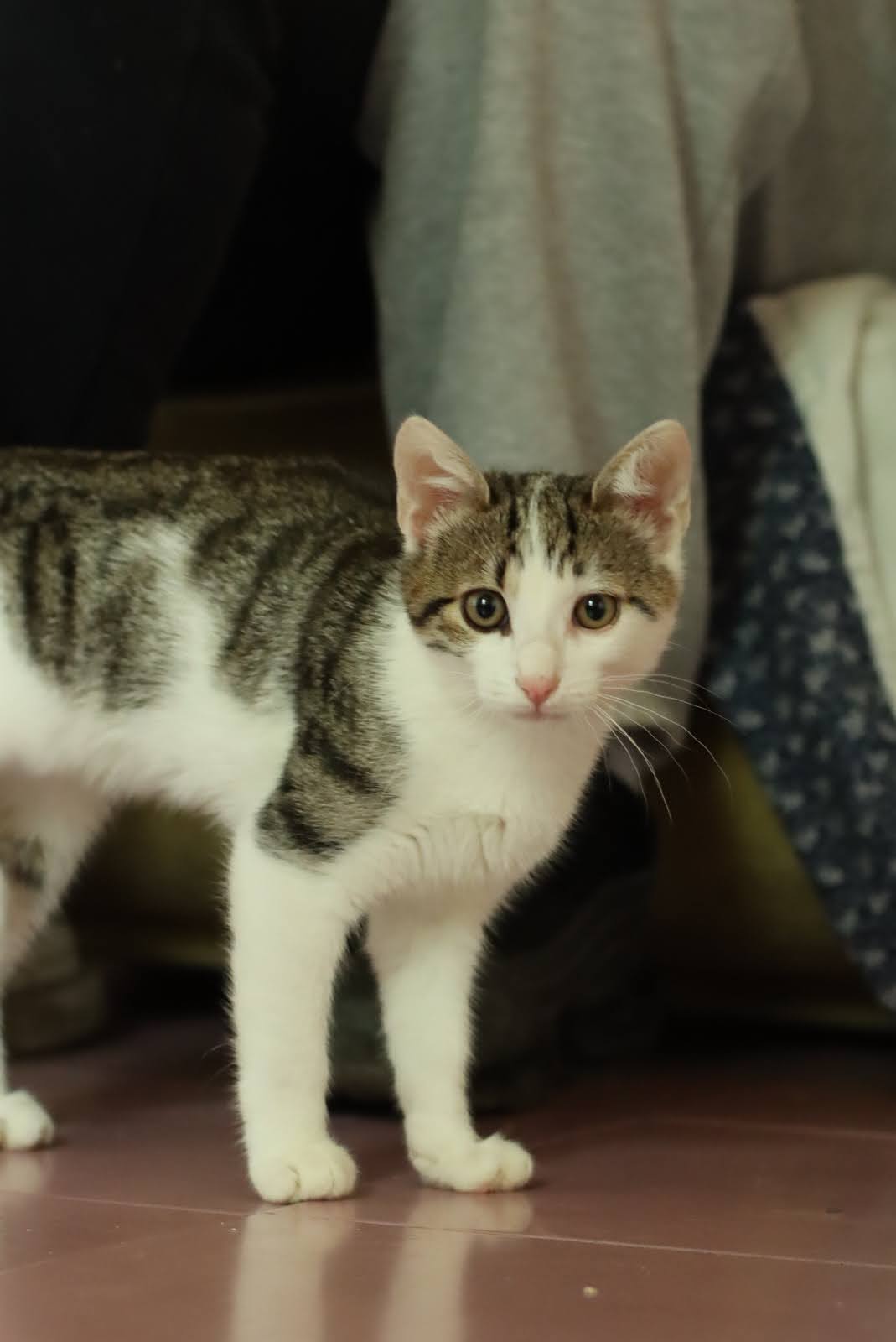 Ce petit rescapé est aujourd’hui un chaton curieux, joueur et plein d’énergie. Derrière son regard tendre, on devine la force d’un petit cœur qui n’a jamais renoncé. Très attachant, il adore venir chercher de l’attention, réclamer des câlins, et il a gardé une joie de vivre qui force l’admiration.