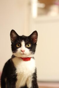 Yasu s’entend très bien avec les chiens et il est ok chats – même s’il doit encore apprendre à jouer plus délicatement avec eux.
